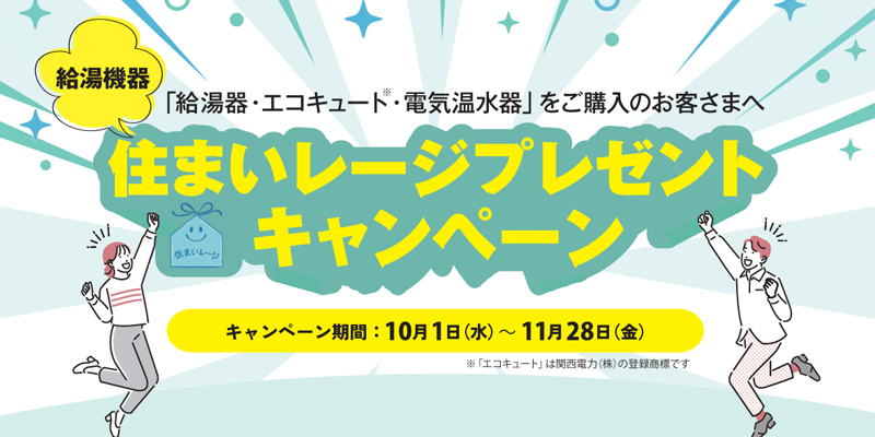 給湯器の交換等(税込み110,000円以上)をお申込みいただいた方にスマイルをプレゼント!