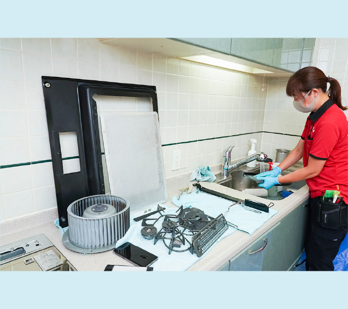 【注意】 A・Dのメニューに関しまして ※吊戸棚は表面を清掃。お客様に棚の食器類を移動していただいた場合は中の清掃もいたします。 ※魚焼き器の庫内清掃は行いません。 ※照明器具及び設備機器等の種類によっては対応できない場合がありますのでご了承ください。 ※キッチン照明は外側(カバー)のみ清掃。 ※ご案内のメニューはすべて、表記以外の組み合わせのご注文は、お受けできません。 画像はイメージです。