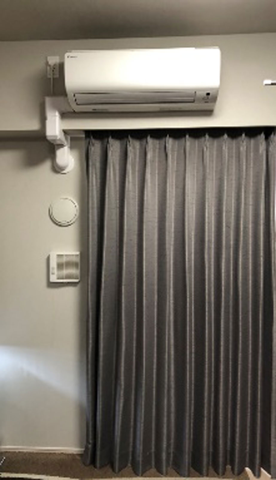 エアコン室内機全体と設置場所がわかるように(天井から床まで)